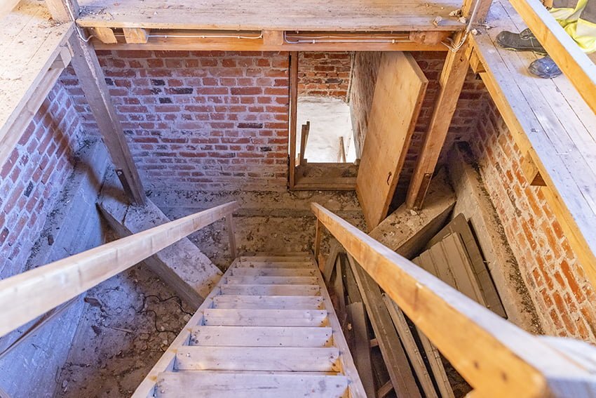 Maisemia eri suuntiin Muutaman portaikon jälkeen on betoninen lattiatasanne, josta portaat jatkuvat pätkä kerrallaan kellotasanteelle saakka…