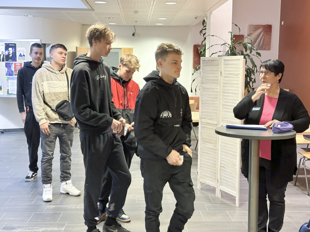 Kutsunnanalaisia ilmoittautumassa asevelvollisuussihteeri Jaana Korhoselle. Kuva: AKU LAATIKAINEN