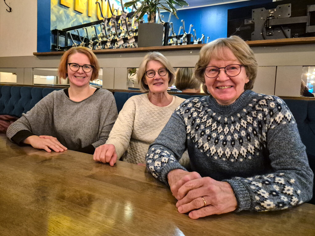 Tiina Jauhiainen (vas.), Anneli Lämsä ja Mirjami Nuutinen kuuluvat LC Kiuruvesi Ladyihin eli puolisoihin. Nykyään toiminnassa on mukana parikymmentä henkilöä, osa työikäisiä ja osa jo eläkkeellä. Kuva: HANNA SOINI