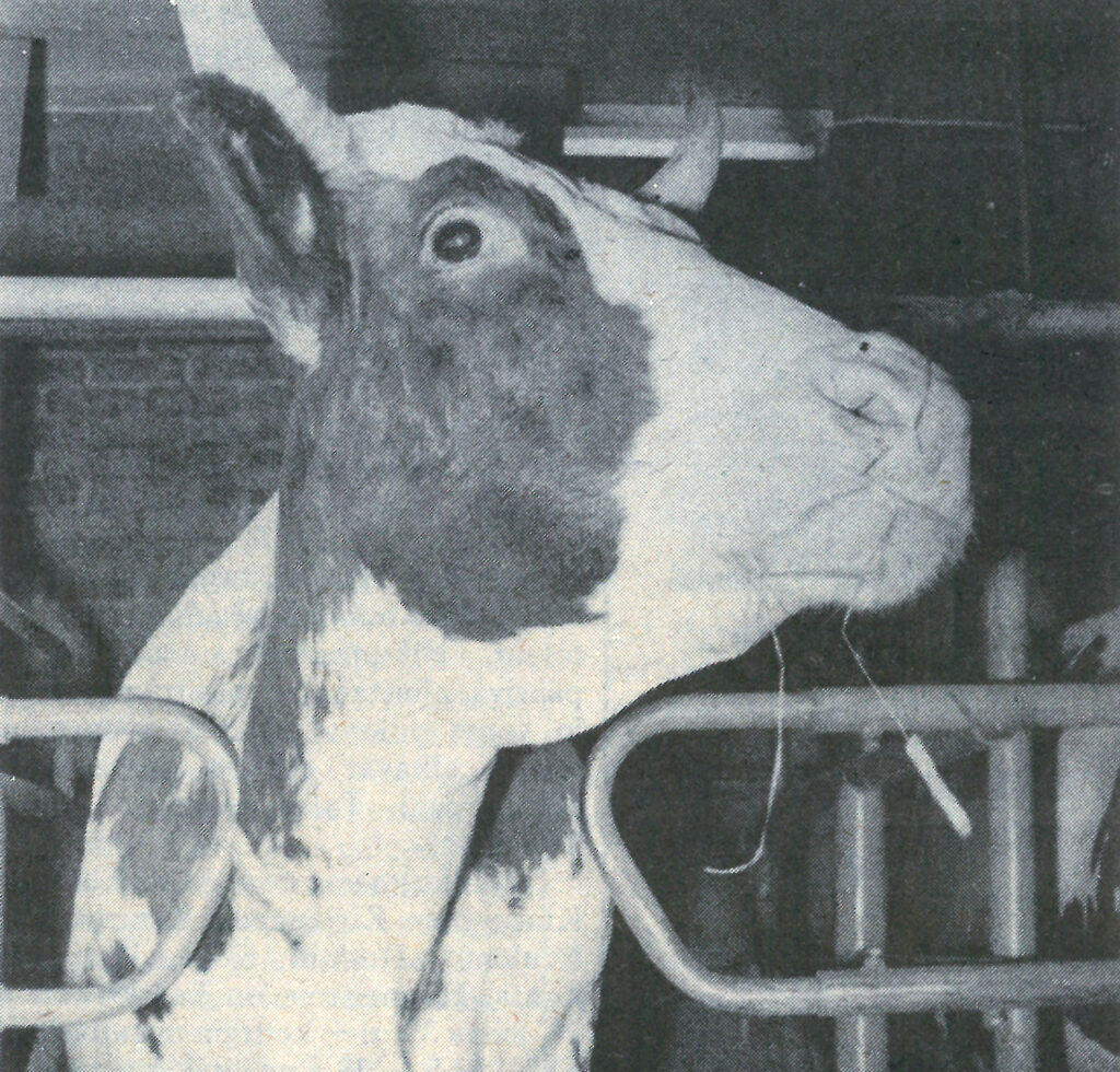 Ja tässä "Lystikki" väljässä parressaan. Systeemi on kätevä – lehmällä on liikkumatilaa, mutta esteet pitävät sen kuitenkin parressaan. Kuva: KIURUVESI-LEHTI